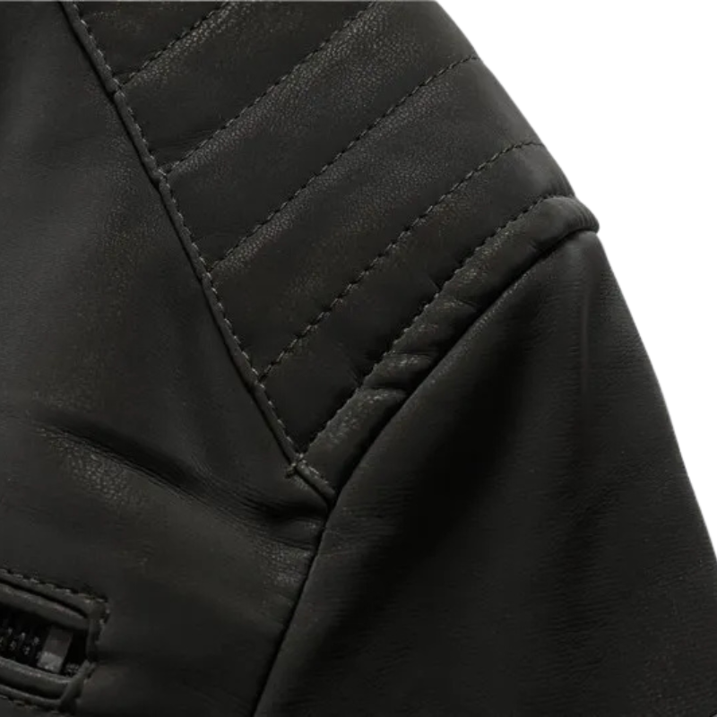 Denna bikerjacka för män har en frontstängning och en definierad silhuett, designad för dem som föredrar ett figurnära ytterplagg. Dess formade struktur och praktiska detaljer gör den anpassningsbar för både avslappnat bruk och lager-på-lager-styling under svalare säsonger, vilket erbjuder ett förfinat plagg med tidlös känsla.