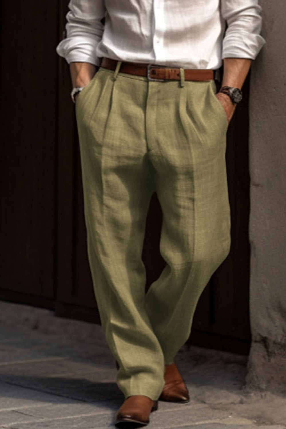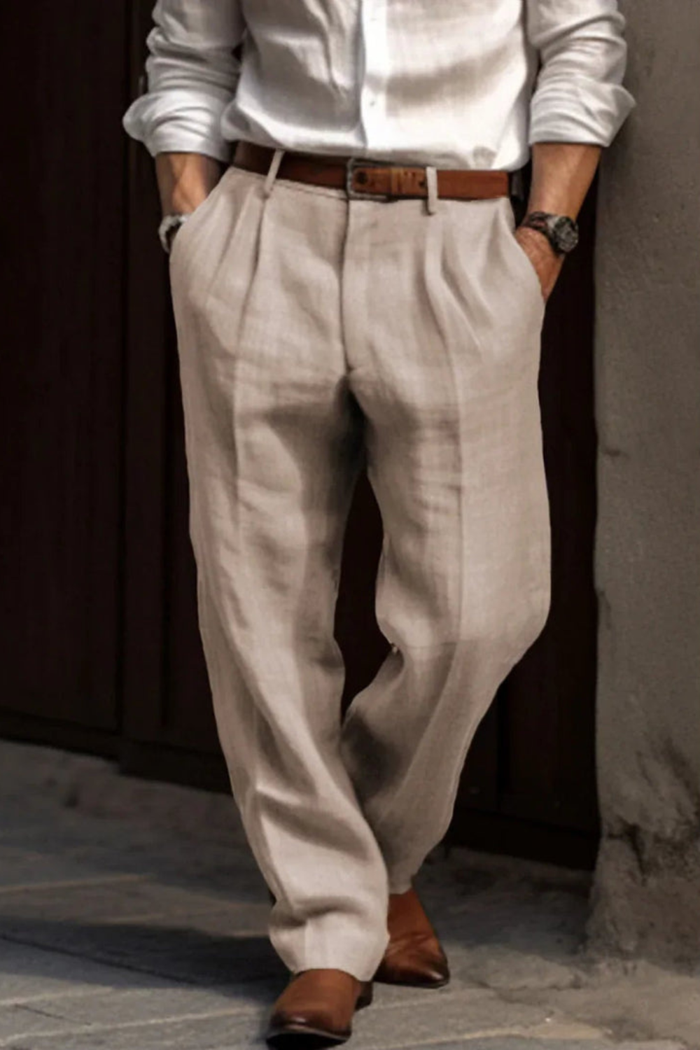 Dessa plisserade raka byxor för män har en balanserad silhuett som passar året runt. Med en strukturerad form, justerbar midja och funktionella detaljer erbjuder de ett mångsidigt alternativ för både avslappnade och formella sammanhang. Deras neutrala utseende gör dem till ett praktiskt tillskott i en varierad garderob.